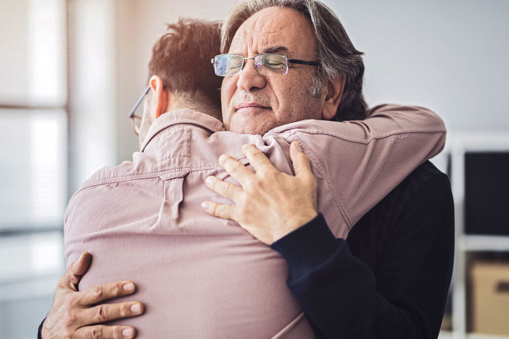 Son hugs his own father